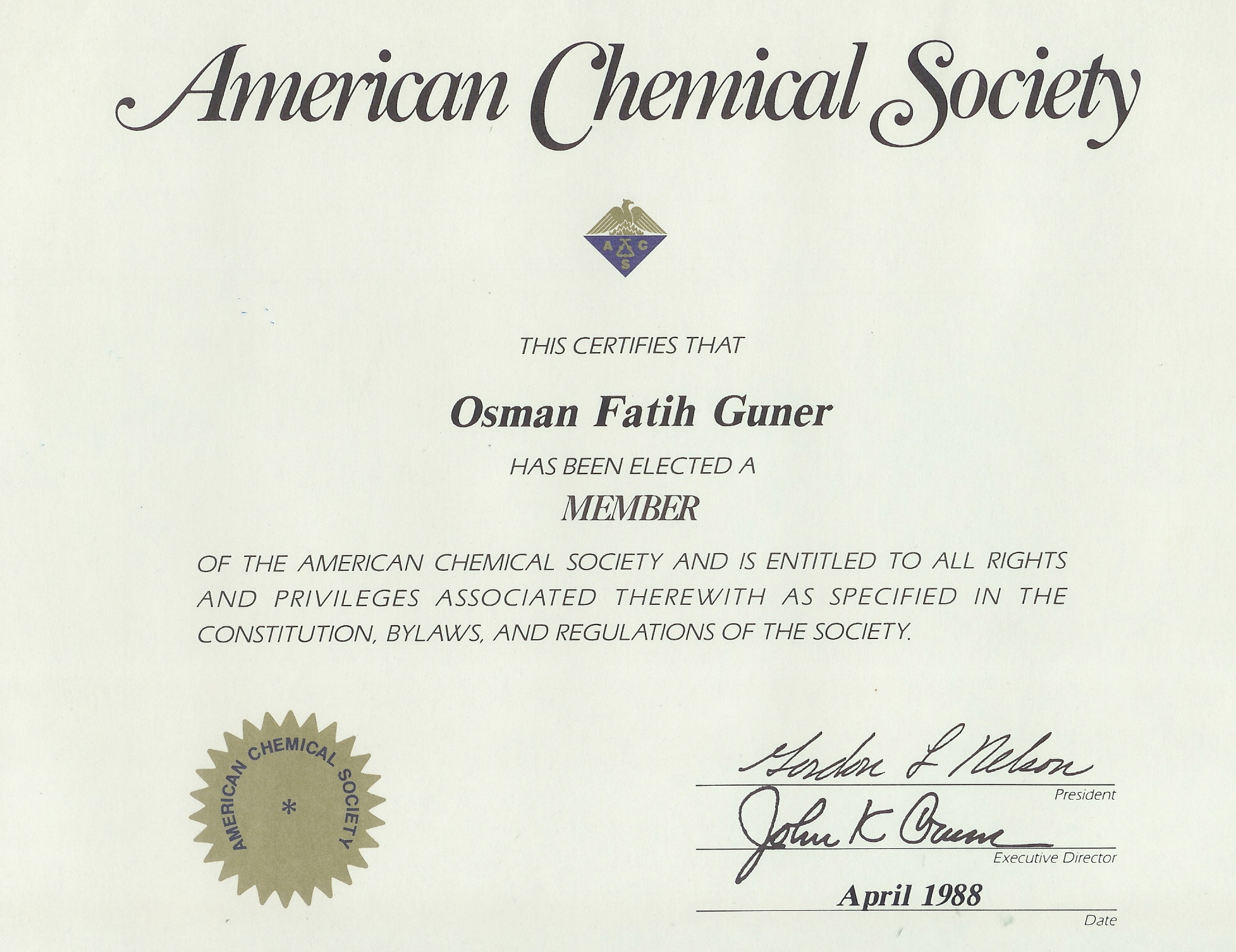 Member, American Chemical Society, 1985 – to date